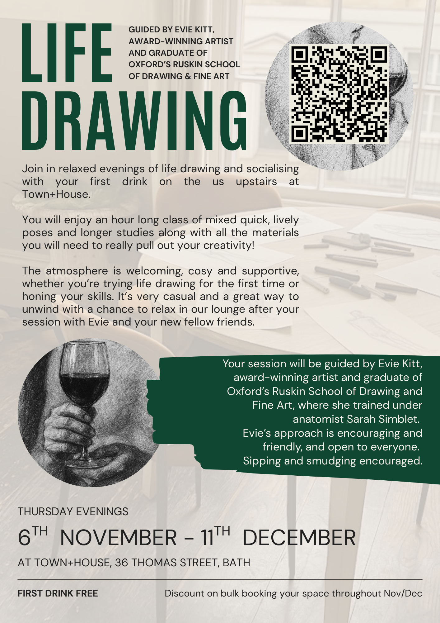 Unwind on Thursday evenings with a glass in hand (your first drink’s on us 🍷) and let your creativity flow in the cosy upstairs lounge at Town+House.